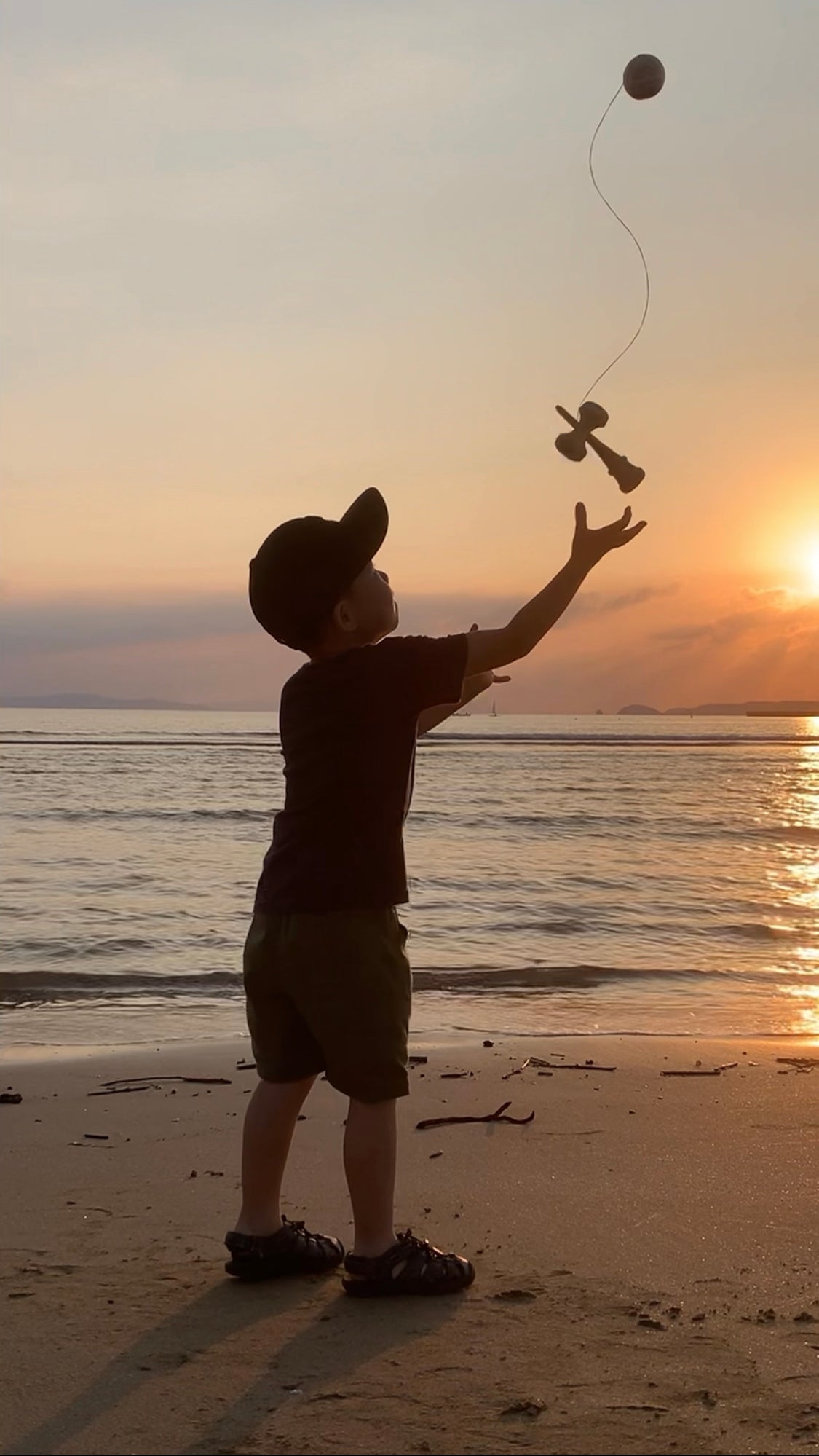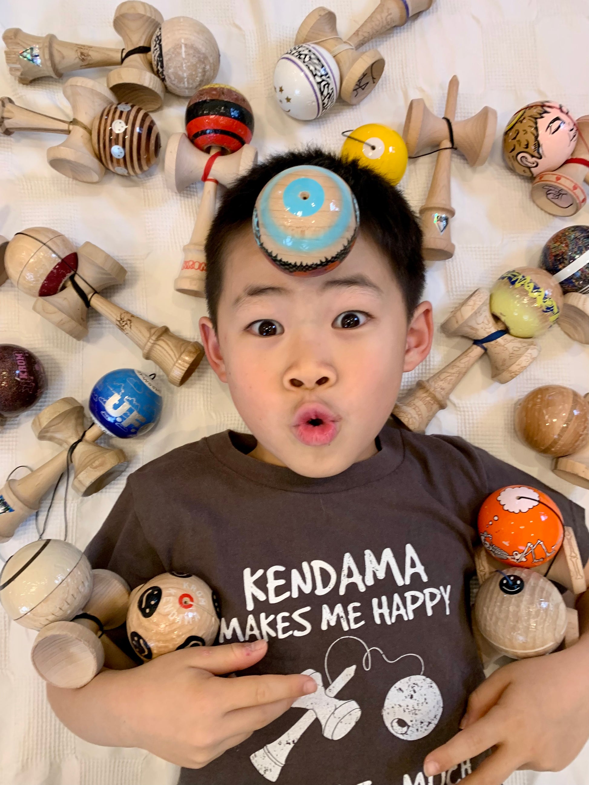 After playing a plastic toy kendama for a while he became interested in the "real" kendama made from wood and have been unstoppable in his progress since!