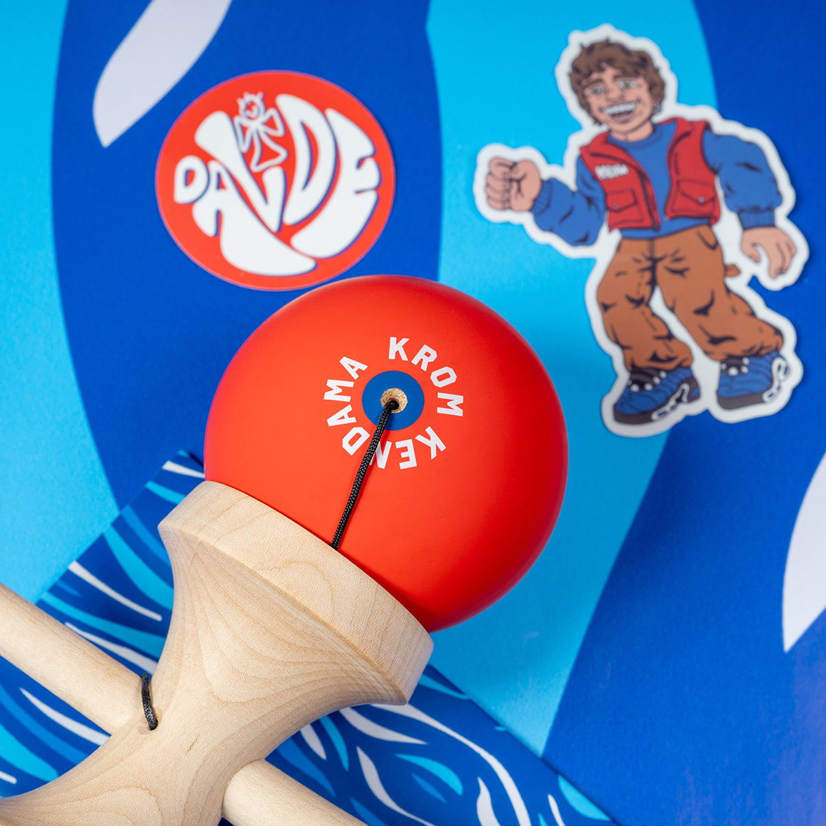 DAVIDE PRO MODEL — a kendama that embodies both smooth creativity and fearless energy. Built on the KROM FREESTYLE shape, this setup gives you balance, control, and extra room to push your lines further.