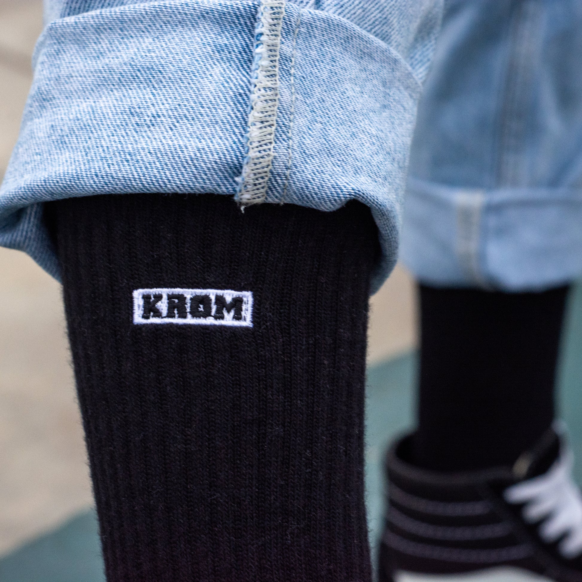 The KROM BOX LOGO socks are knitted from a soft organic fair trade cotton-blend for optimal comfort, size adaptability and durability. The socks feature our signature BOX logo embroidery on the outward-facing side of each sock.